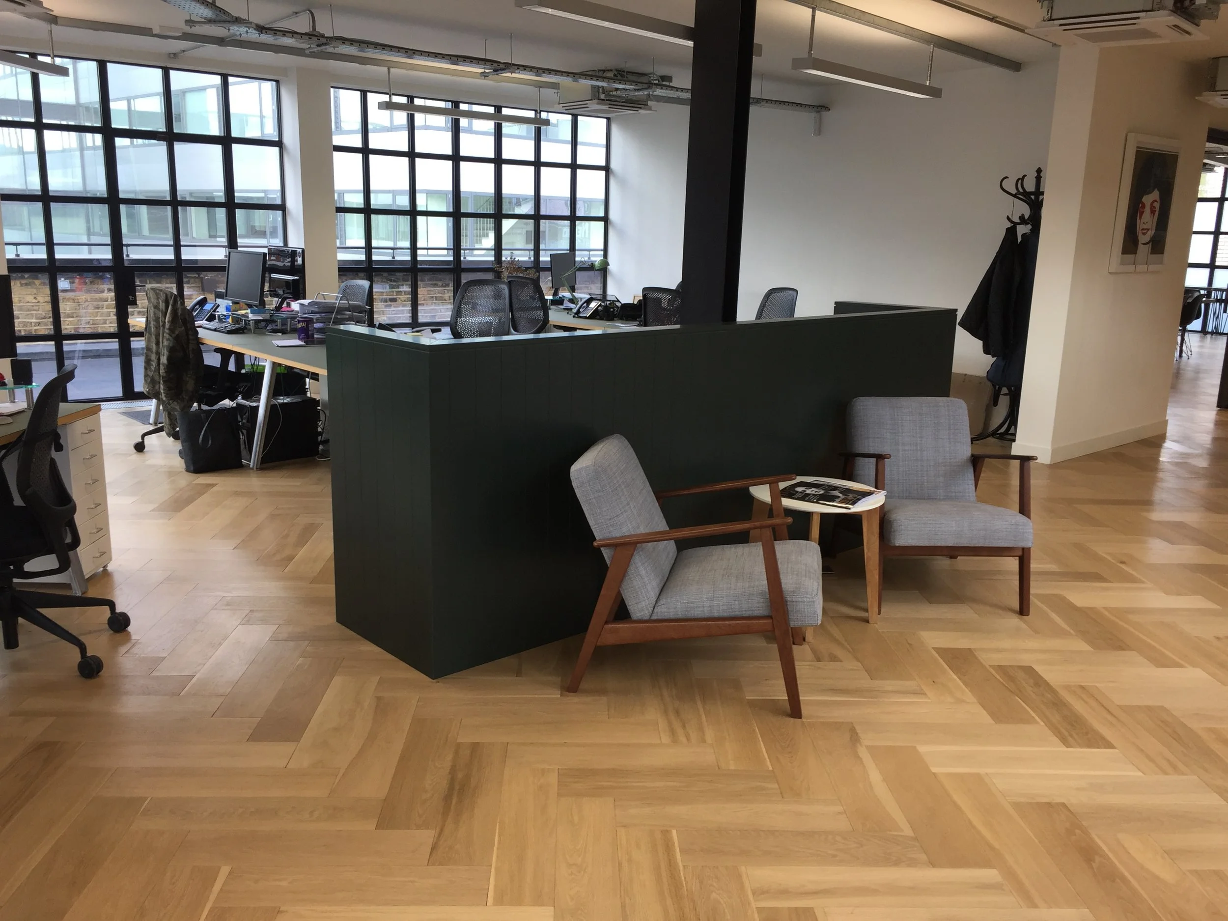 Falkus manufactured and installed custom joinery throughout the agencies workspace and amenity areas. This included specialist cabinetry in the open work space area, templated to fit around the existing steelwork, a full kitchen with polished concrete worktops within the break out space and a fully equipped bar, complete with beer tap. The bar joinery matched the kitchen and featured a waterfall polished concrete worktop and large timber sliding panels that concealed the glassware behind.
